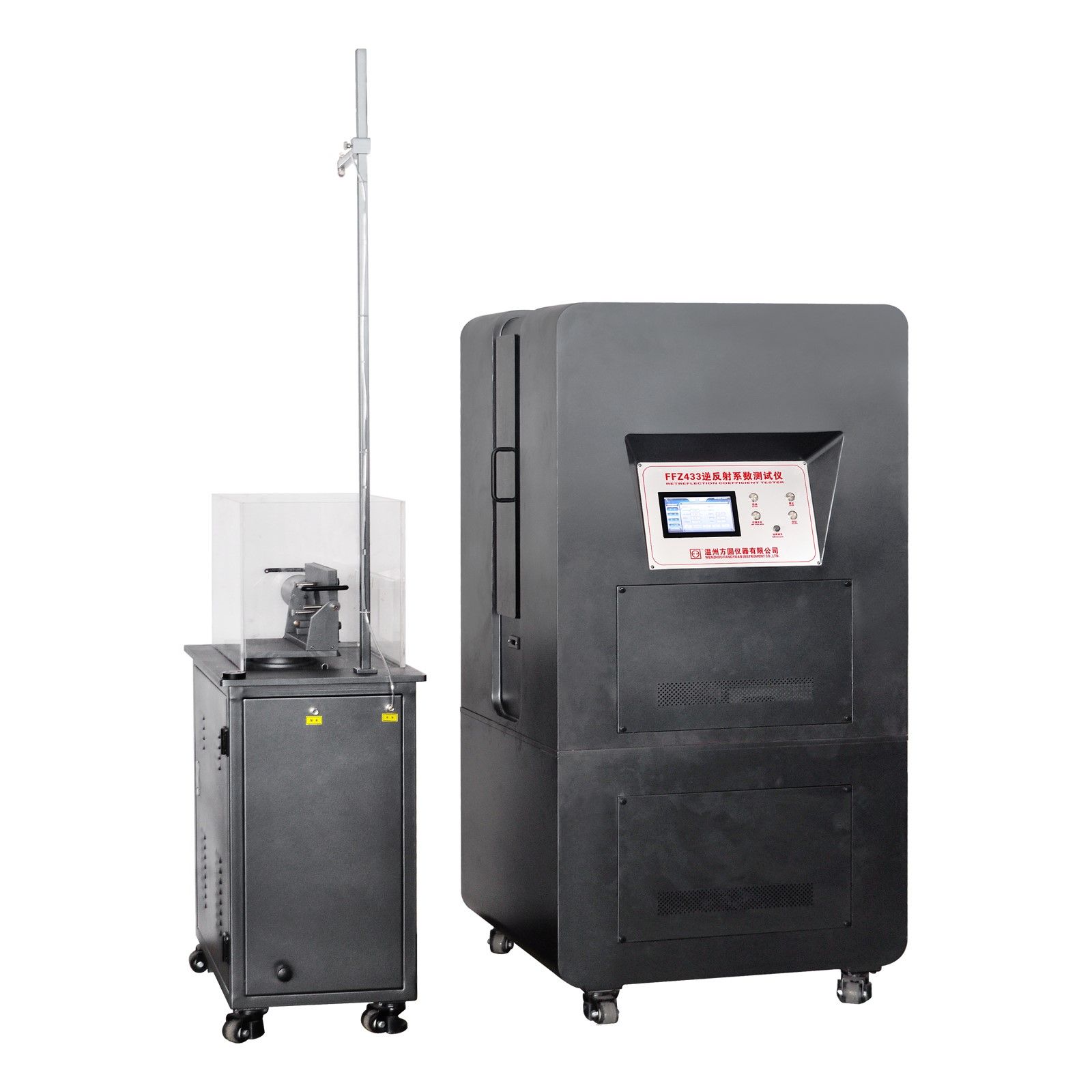 本公司自主研發(fā)FFZ433逆反射系數(shù)測試儀用于職業(yè)用高可視性警示材料、中小學生交通安全反光校服等材料在干狀態(tài)和淋雨濕狀態(tài)下反光性能的評定。
